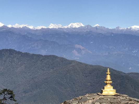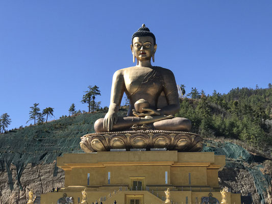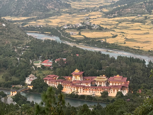 Bevor Sie Richtung Punakha fahren, besuchen Sie den goldenen Buddha. Anschliessend fahren Sie auf den Dochula Pass (3116m) mit den 108 Gedenk-Stupa. Bei klarem Wetter ist die Aussicht auf den Himalaya überwältigend. Wenn Sie mögen, können Sie durch Rhododendren Wald zu einem Tempel wandern und geniessen das Bergpanorama, hin und zurück sind es rund 3-4 Stunden. Gegen Abend erreichen Sie Punakha. Das Punakha Tal liegt nur auf 1400m, es ist wärmer als in den vergangenen Tagen und die Vegetation ist tropisch.