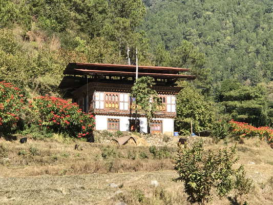 Kurz vor der Passhöhe biegt die Strasse nach rechts ab und über einen kleinen Pass ins malerische Phobjikha Tal. Bald erreichen Sie das wunderschöne Guesthouse.
