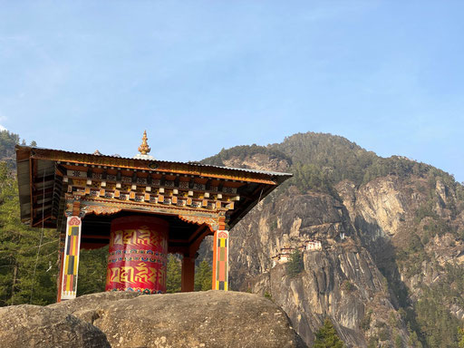 Einer der Höhepunkte ist die Wanderung zum Kloster Taktsang (Tigernest), das im 17. Jahrhundert in den Felsen gebaut wurde. Bei guter Kondition erreichen Sie das Kloster in rund zwei Stunden. Der Weg ist gut ausgebaut und führt durch den Wald, in der Hälfte der Wegstrecke hat es eine Cafeteria mit toller Aussicht aufs Kloster. Der Besuch vom Taktsang ist unvergesslich, einerseits wegen seiner Lage und der Architektur, andererseits wegen seiner Magie und der Aussicht aufs Tal.