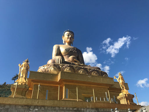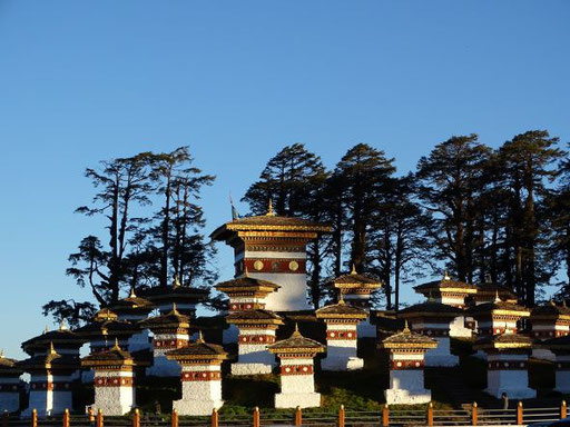 Fahrt über den Pass Dochula (3050) mit den 108 Gedenkstupas (und toller Aussicht auf den Himalaya) nach Thimphu. Sie besuchen die grosse goldene Buddha Statue, die Gedenkstupa und haben freie Zeit für Shopping oder den Besuch einer Künstlergalerie. Am späteren Nachmittag fahren Sie ins vertraute Paro zurück.