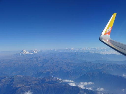 um danach rasch an Höhe zu verlieren und in Paro zu landen.